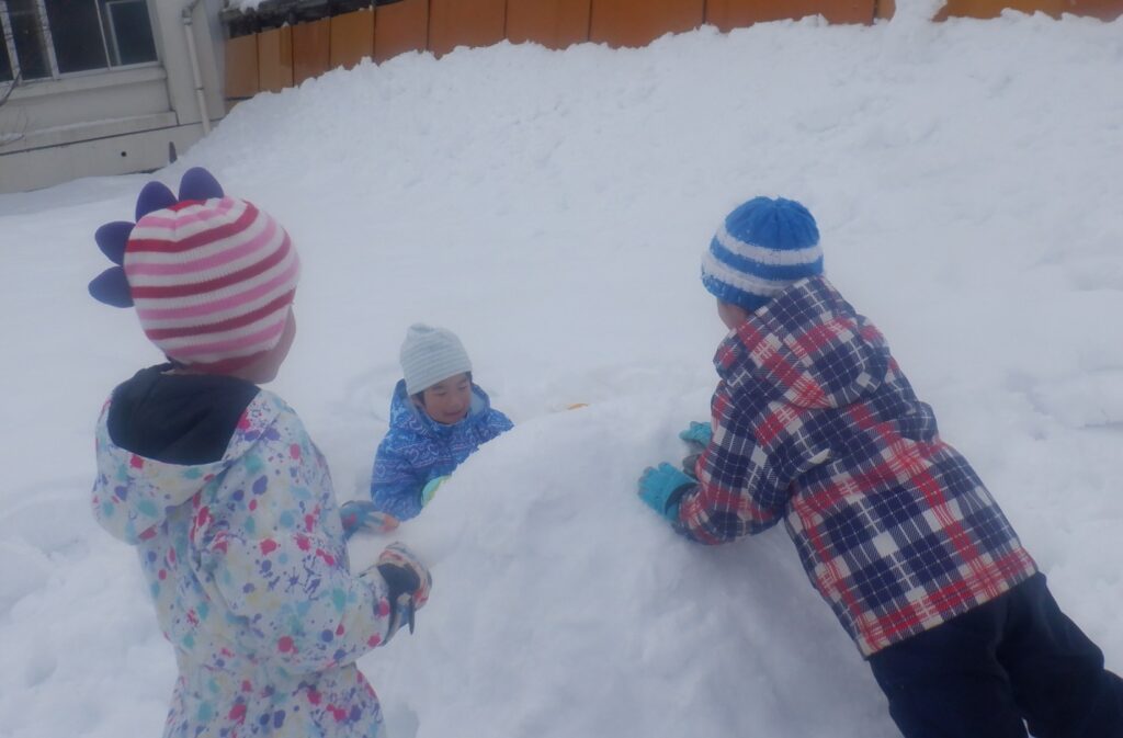 もり組のお友達は,お友達とアイデアを出しながら丈夫なかまくらを作っています。