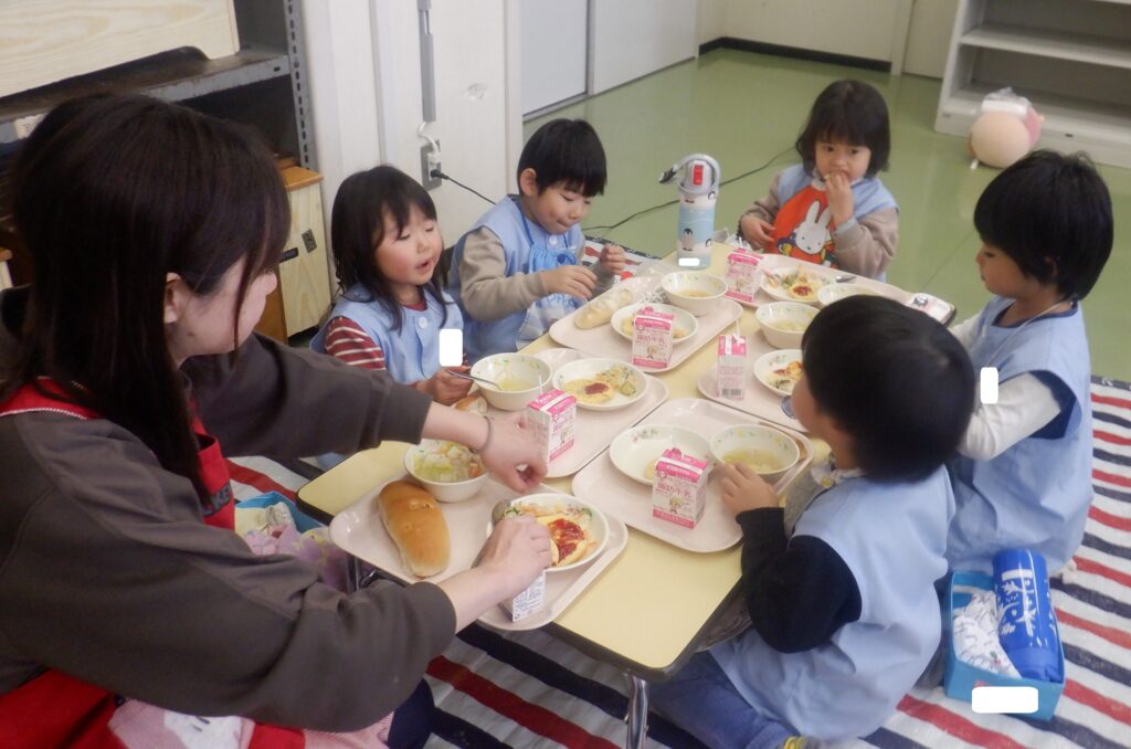 「パンのなかに りんごが はいっていたよ」「いつもとちがって ちょっとワクワクするね」