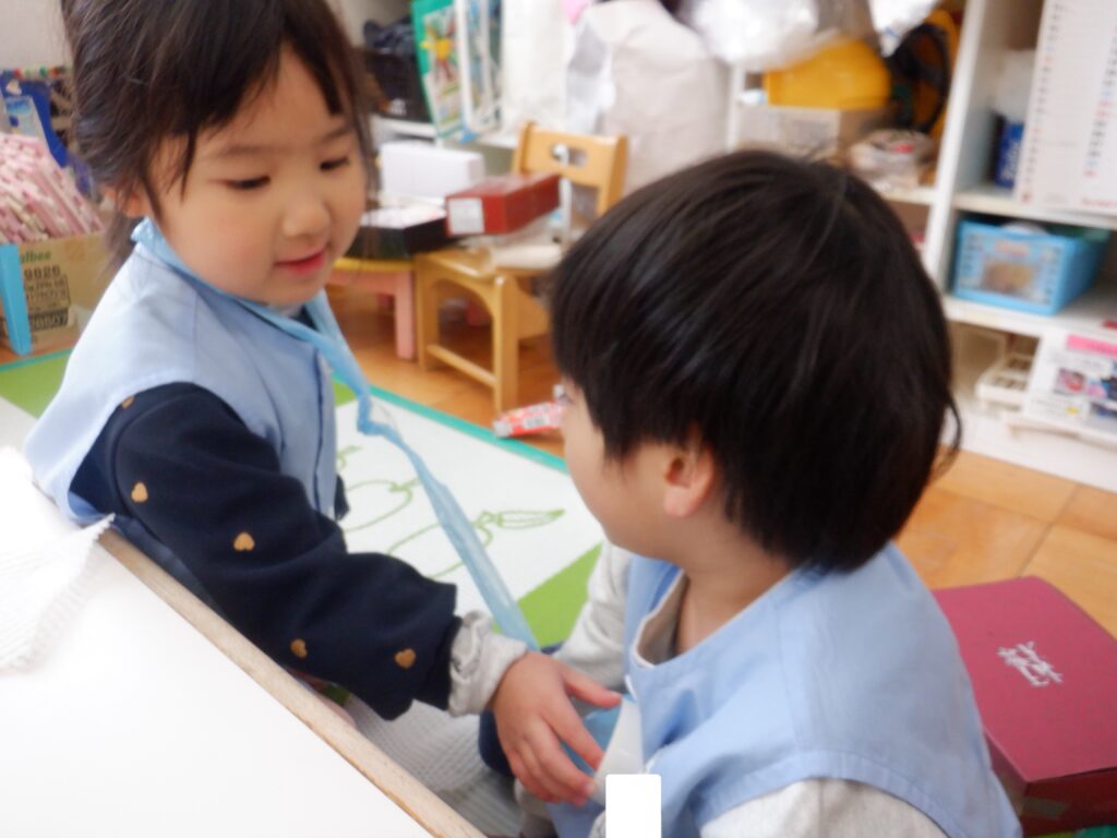 もり組のお友達は,占い師になりきって,お客さんの運勢を占っています。