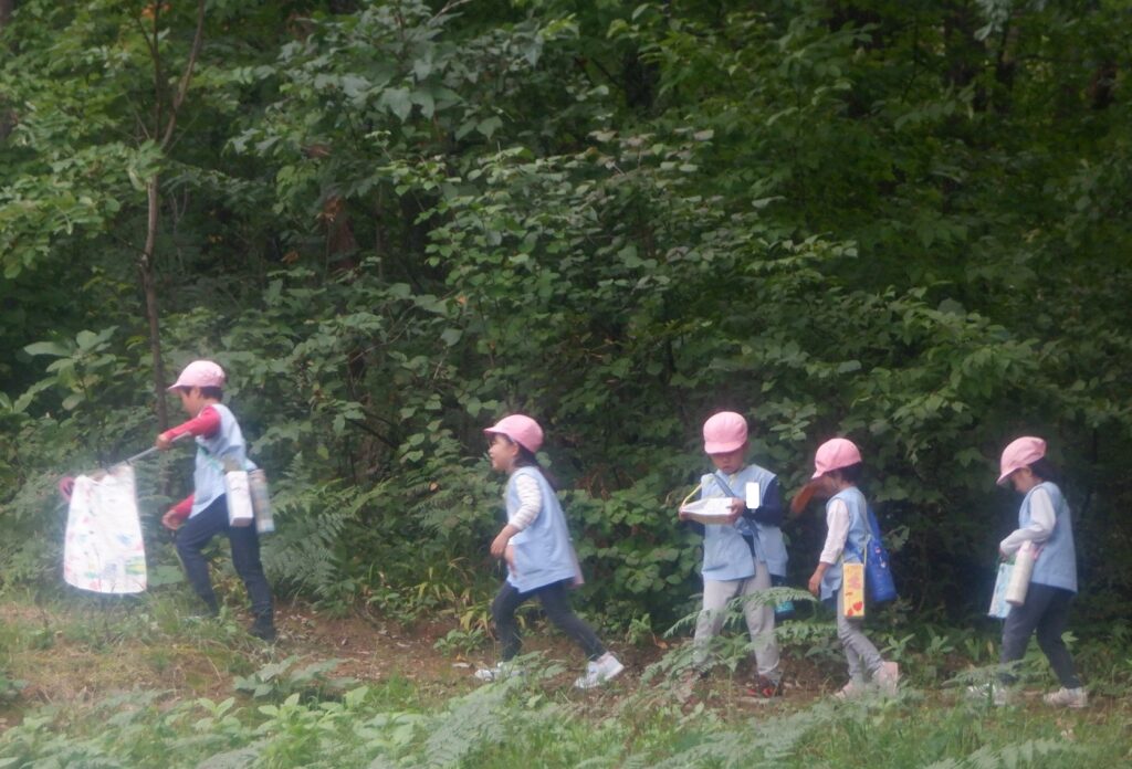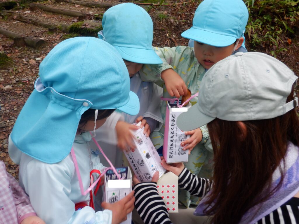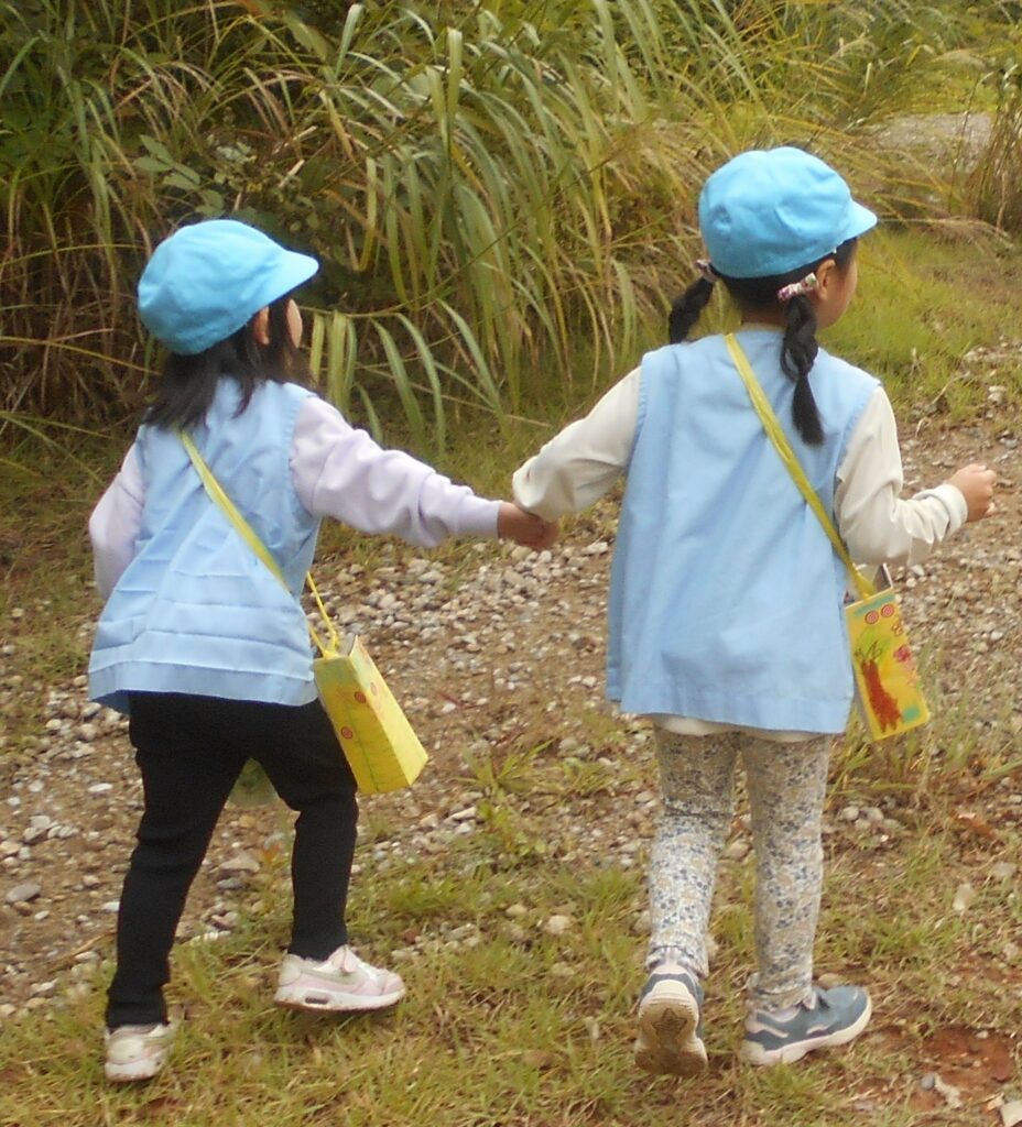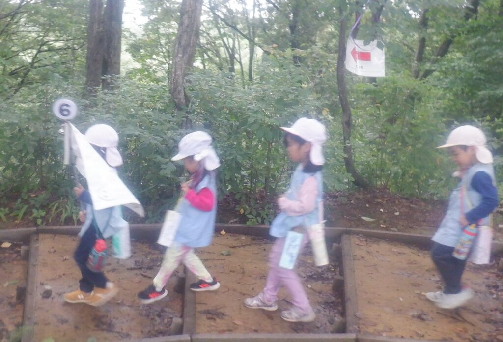 さくら組のお友達は,途中で木の実や落ち葉などのお宝を拾ったり,ミッションに挑戦したりしながら,みんなで元気に歩きました。