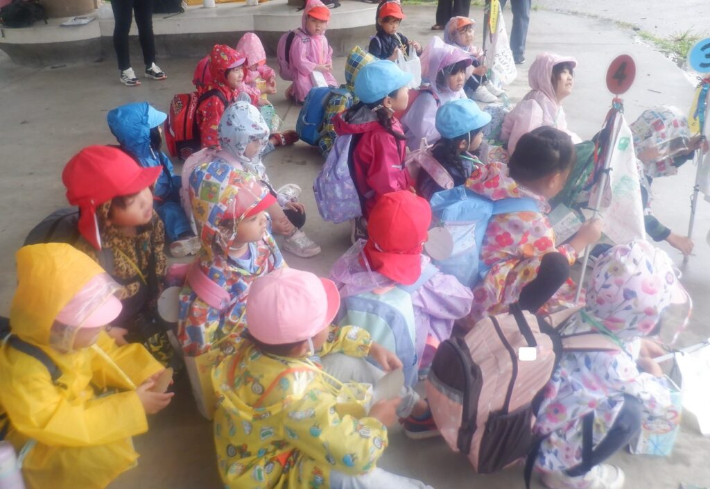 今日は,探検遠足の日です。曇り空ですが,みんなの心の天気は晴れです。