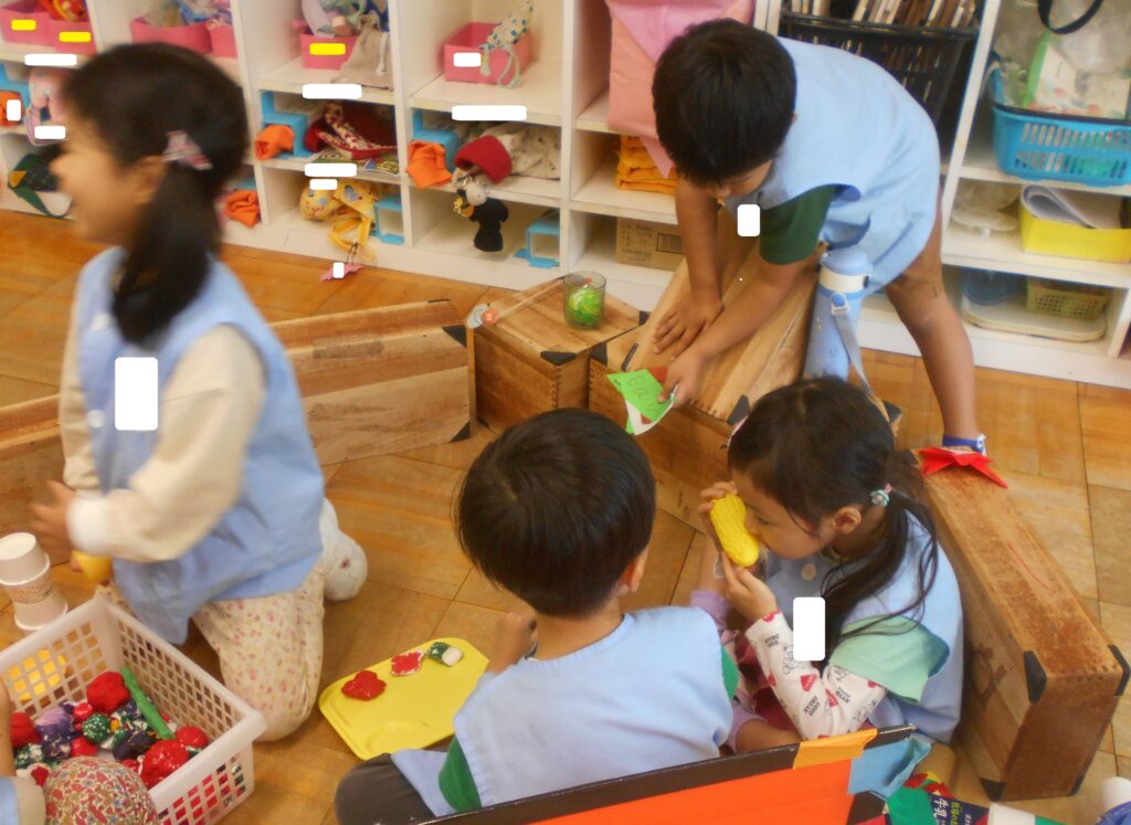 ばら組のお友達は,イメージを共有しながら,お家の中でご飯を作ったり,ペットのお世話をしたりしています。