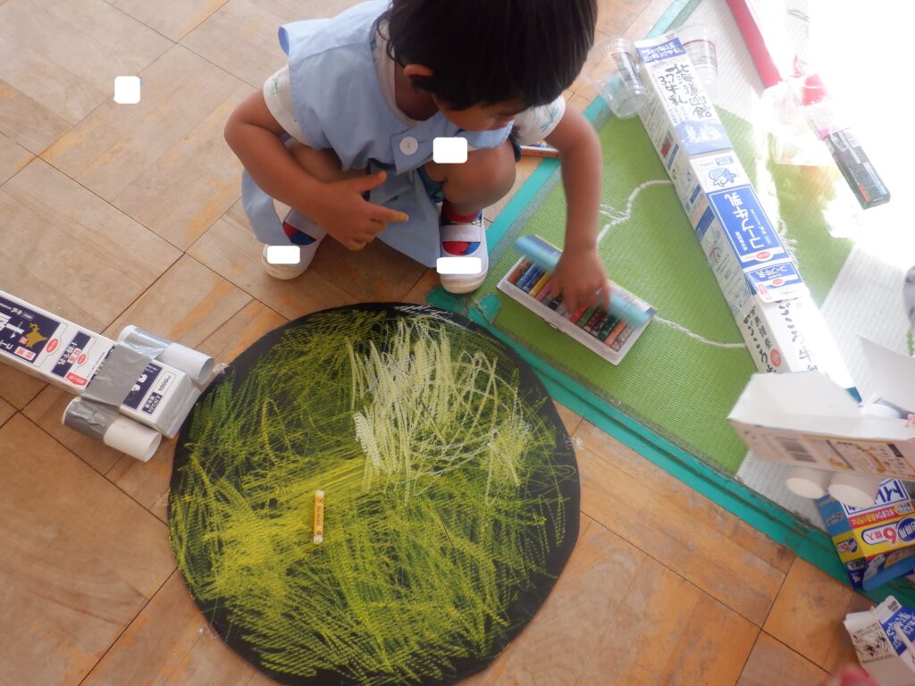 さくら組のお友達は,以前作ったロケットから宇宙をイメージして,まん丸の月を作っています。