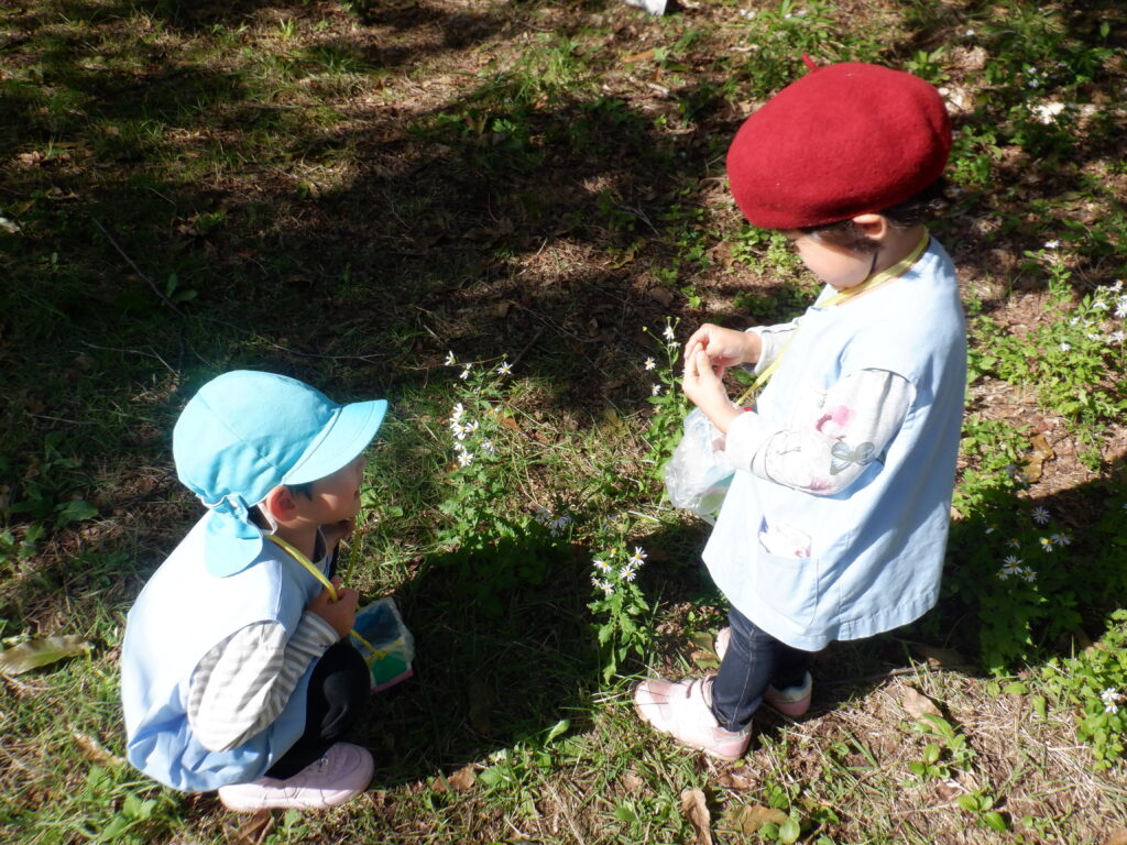 さくら組のお友達は,柿の実を見たり,木の実を拾ったりしながら,ヤッホー広場までお散歩に出かけました。