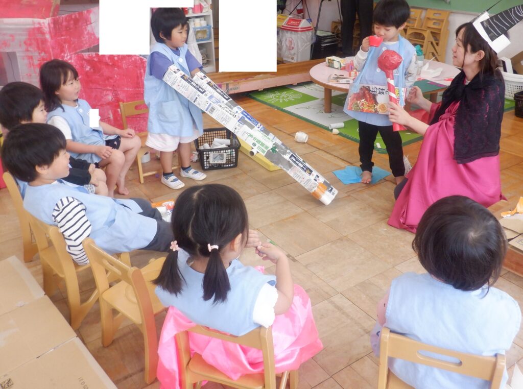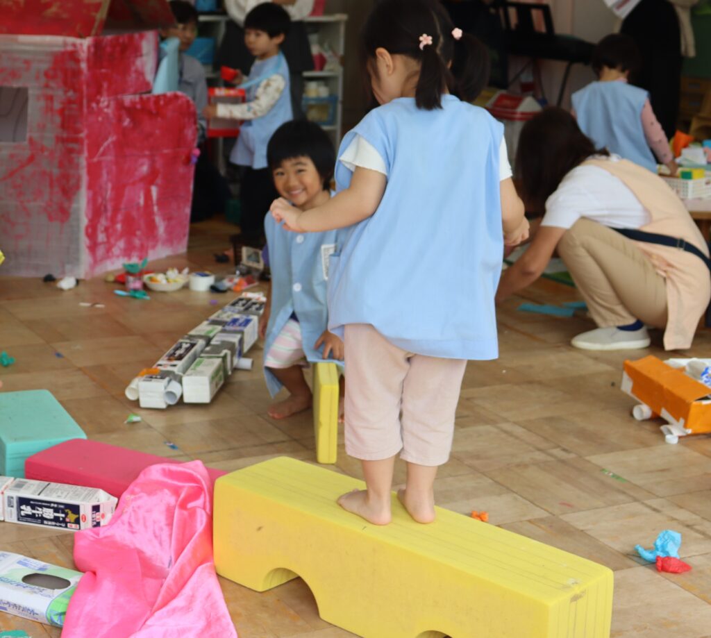 附属幼稚園のお友達は,多くの参加者に見守られながら,自分のイメージに向かって試行錯誤したり,遊びをより楽しくしようと工夫したりしていました。