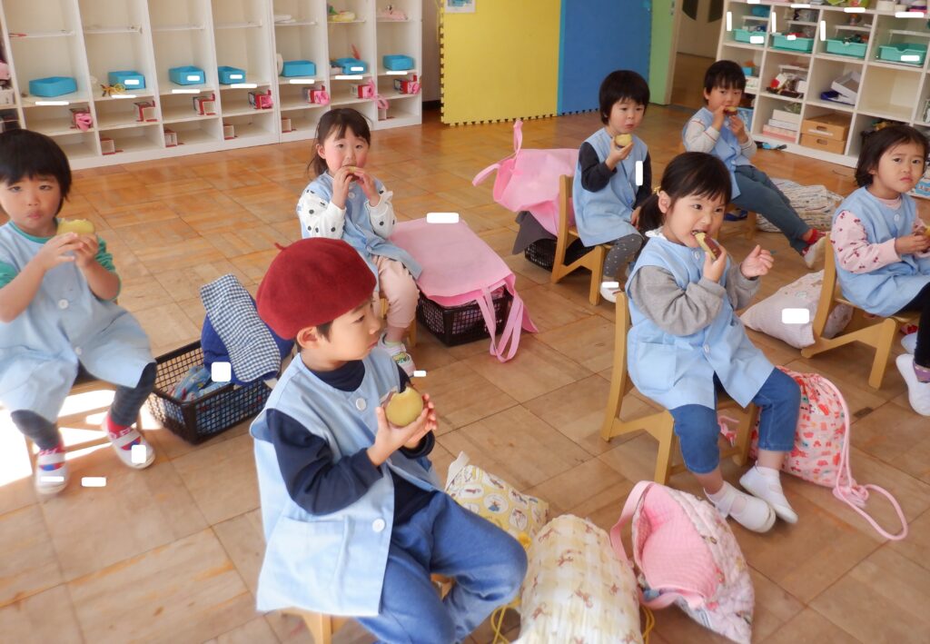 さくら組のお友達は,畑で採れたさつまいもを使って,ふかし芋を作り,おやつの時間に食べています。