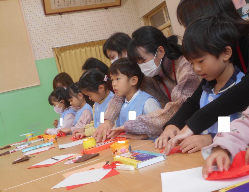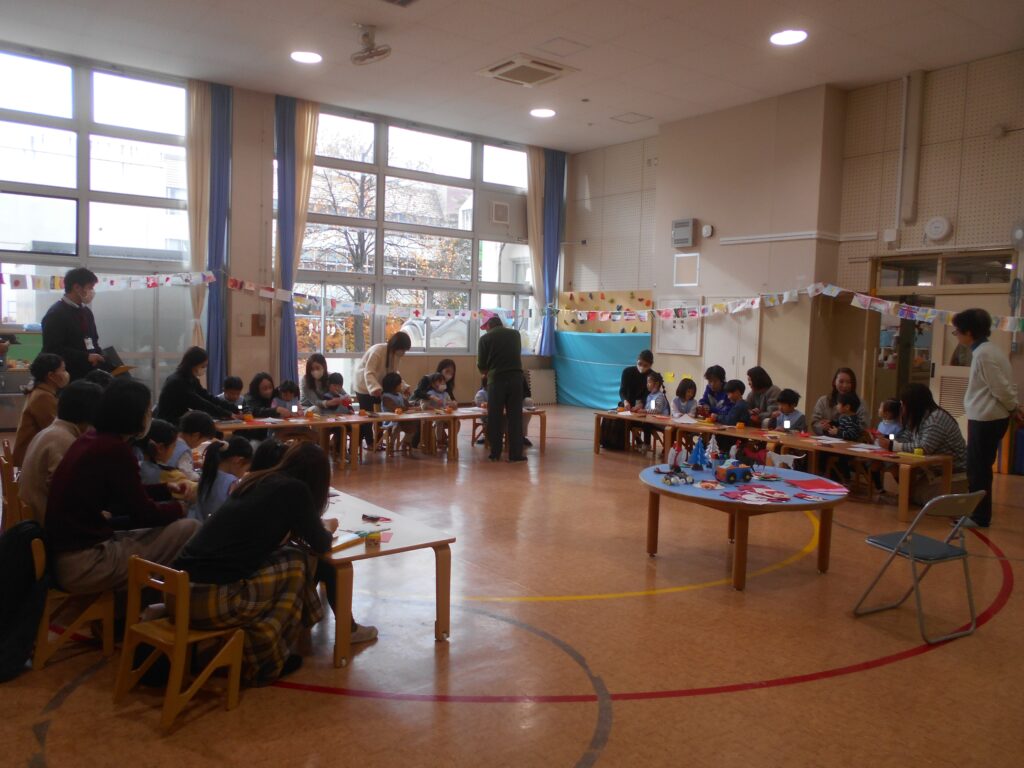 ばら組のお友達は,学級つくしがありました。講師の先生から折り方を教えてもらい,親子でクリスマスの飾りを作りました。