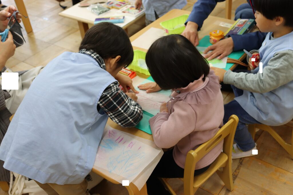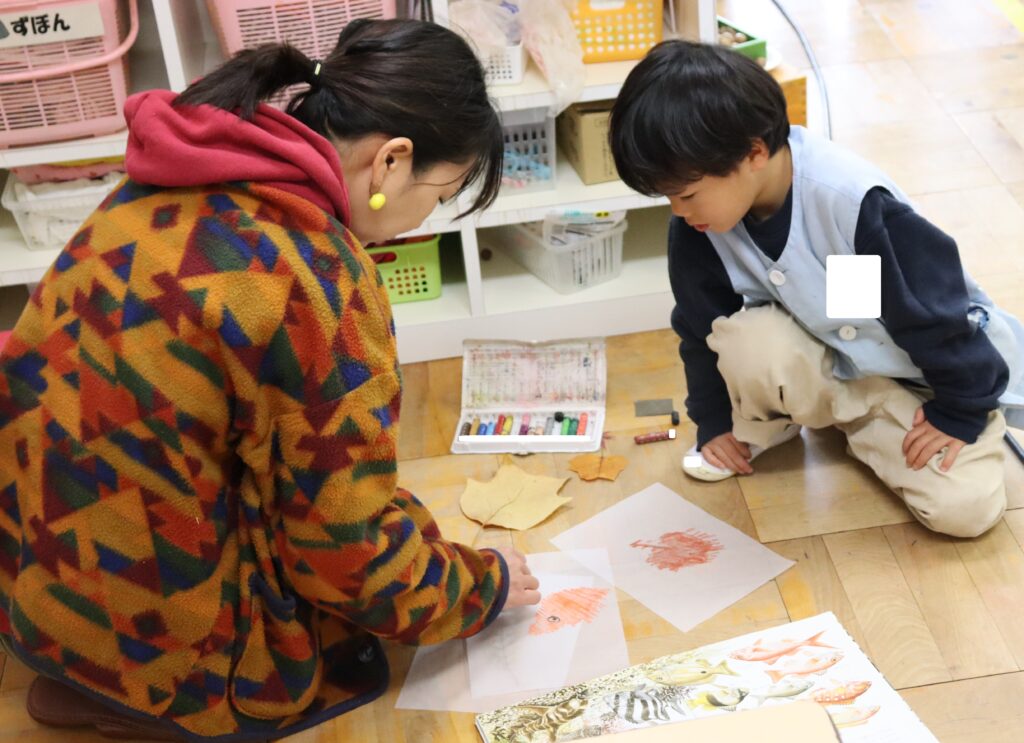 「ここに キラキラおりがみを おいて」「うみのなかにいる さかなを かくよ」
