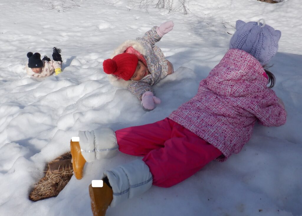 「きもちいいねー」「ゆきが やわらかいね」