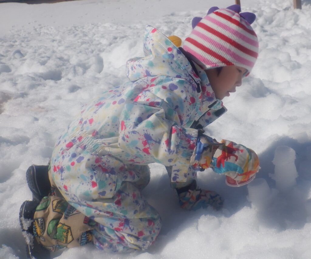 もり組のお友達は,雪を型抜きして1つずつ横に並べたり,何個も重ねて高く積んだりしています。