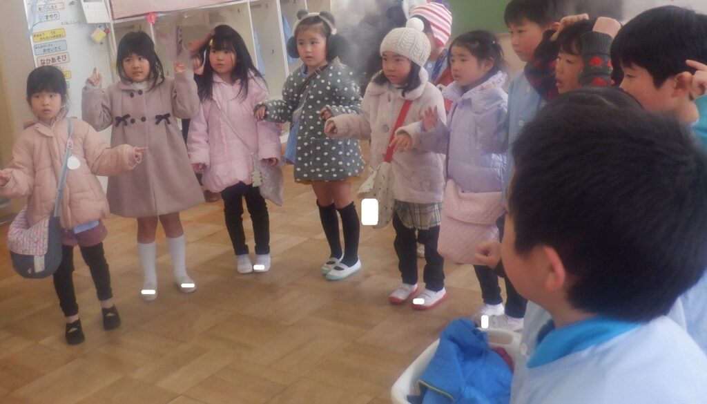 「どっちの てに すずが はいっているでしょうか?」「たのしかったね また やりたいね」