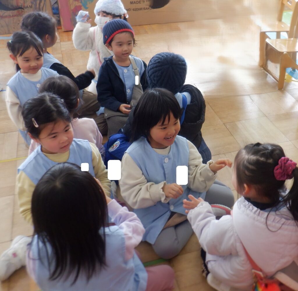 おはなしポケットの皆さんが来てくれて,一緒にわらべうたを楽しみました。音楽のリズムに合わせて体を動かしました。