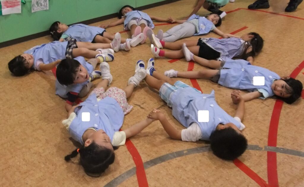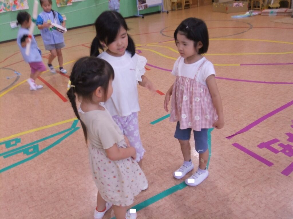 ばら組ともり組のお友達は,一緒に遊びました。遊戯室で鬼ごっこをしたり,ボルダリングをしたり,手をつないで輪になったりしています。