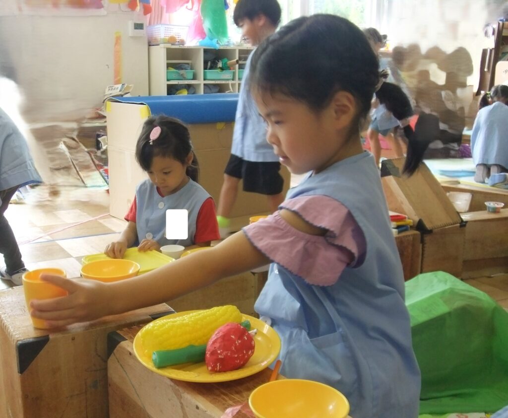 ばら組のお友達は,ねこちゃんがお腹いっぱい食べられるように,量を考えながらご飯を作っています。