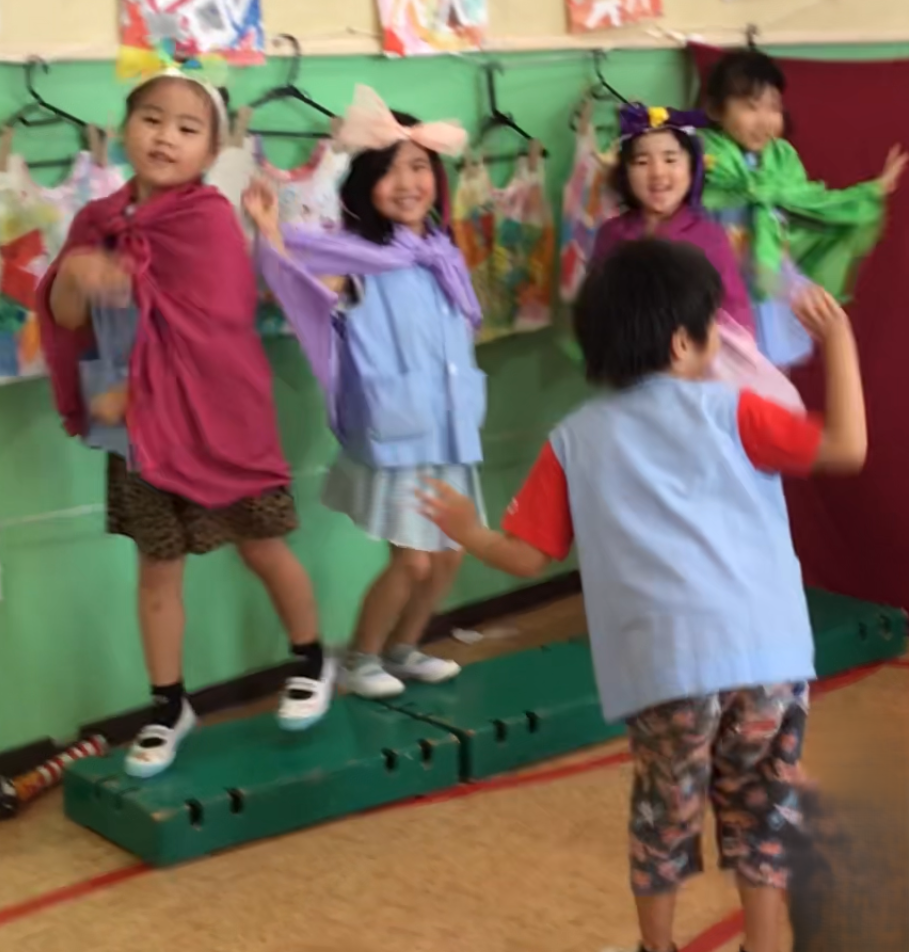 もり組のお友達は,ダンスショーを開きました。お客さんの曲のリクエストに応えて,一緒に踊っています。
